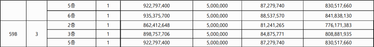- 59B타입 (3세대) - 8.6억원 ~ 9.2억원