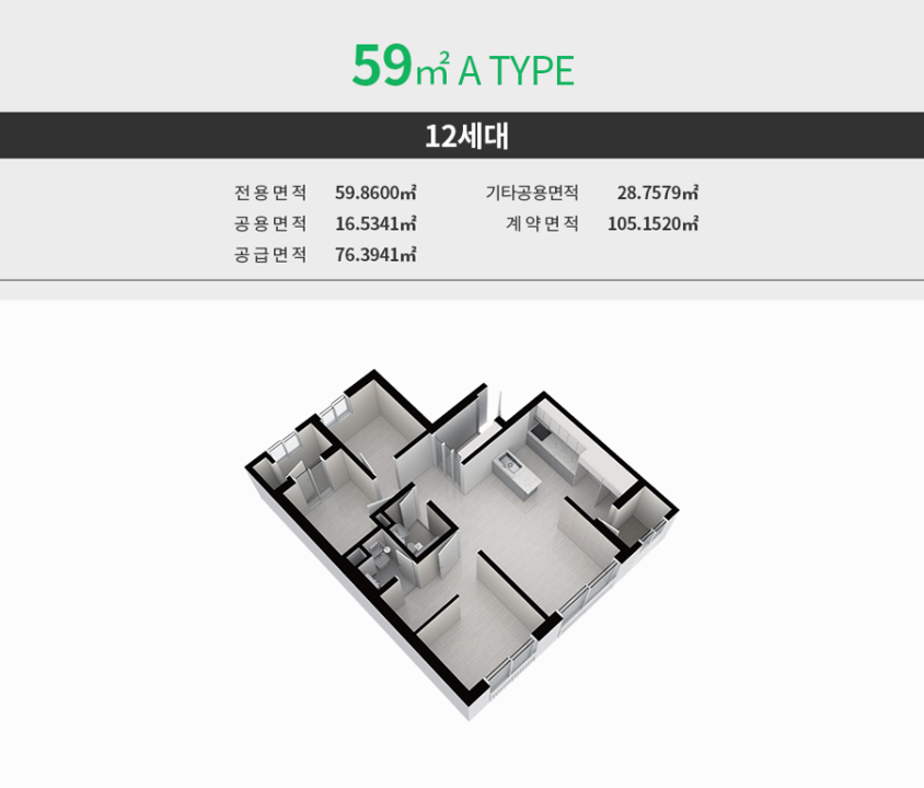 - 59A타입 (5세대) - 9.0억원 ~ 9.4억원